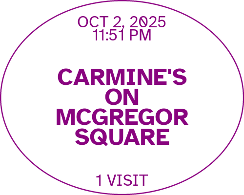 Arrive at Carmine's on McGregor Square.